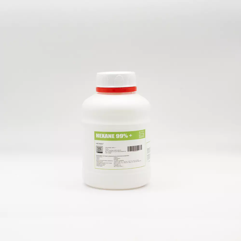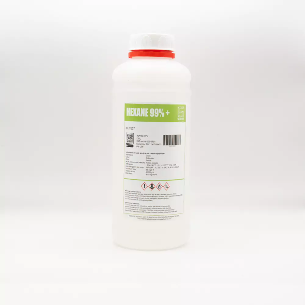 Hexane is a straight-chain alkane with six carbon atoms and fourteen hydrogen atoms. It is a colourless, volatile liquid with a mild gasoline-like odour. Hexane is highly flammable and is widely used as a non-polar solvent in industrial and laboratory settings.